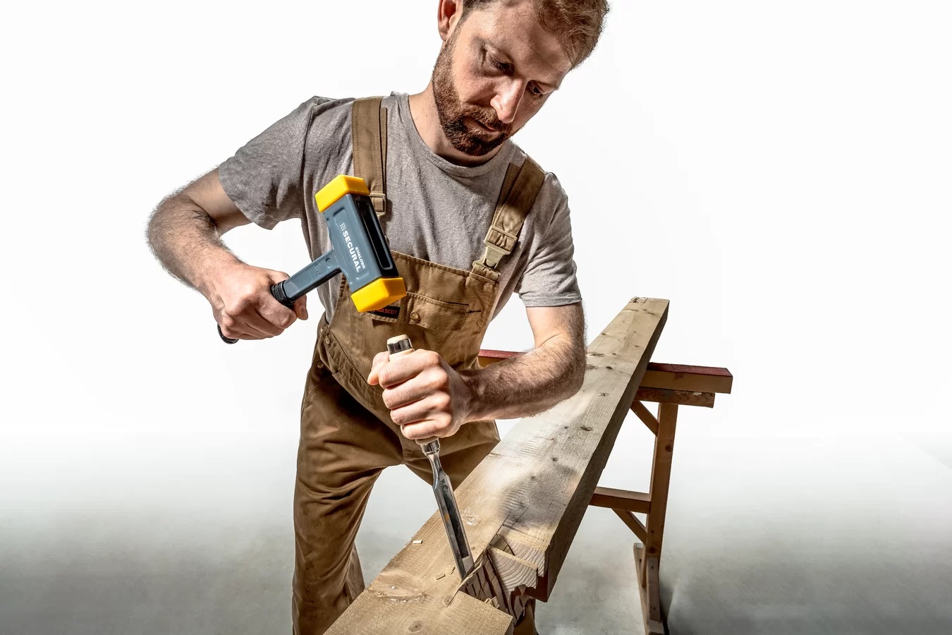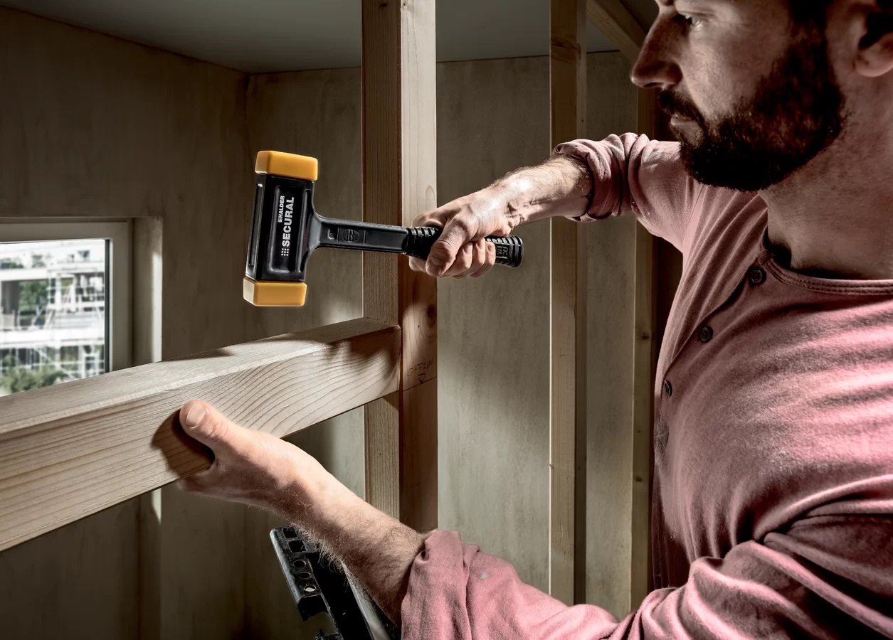Der SECURAL-Schonhammer mit rechteckigen Schlageinsätzen ist besonders für Ecken und Kanten geeignet. Er verfügt über auswechselbare, mittelharte Polyurethan-Schlageinsätze und ermöglicht ein geräuscharmes sowie rückschlagfreies Arbeiten. Das optimale Verhältnis von Hammerkopf- zu Schrotmasse und die Federungseigenschaften der Schlagflächen sorgen für eine hohe Schlagkraft bei maximaler Rückschlagdämpfung, was gelenkschonendes Arbeiten unterstützt. Das längsgeschweisste Gehäuse garantiert eine bruchsichere Verbindung von Hammerkopf und Stiel. Er eignet sich für Anwendungen wie Parkettverlegung, Möbelbau, Trockenbau und Reparaturarbeiten.