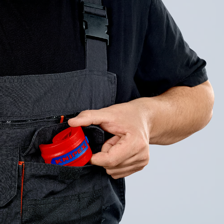 Der Knipex BiX ist ein kompaktes Schneidewerkzeug für unverstärkte Kunststoffrohre und Tropf-/Dichthülsen. Dank dem drehbaren Messerblock schneidet es Rohre mit Durchmessern von 20–50 mm und Wandstärken bis 2,4 mm präzise und spanlos. Es ist leicht (108 g), handlich (72 mm) und ideal für enge Arbeitsumgebungen.
