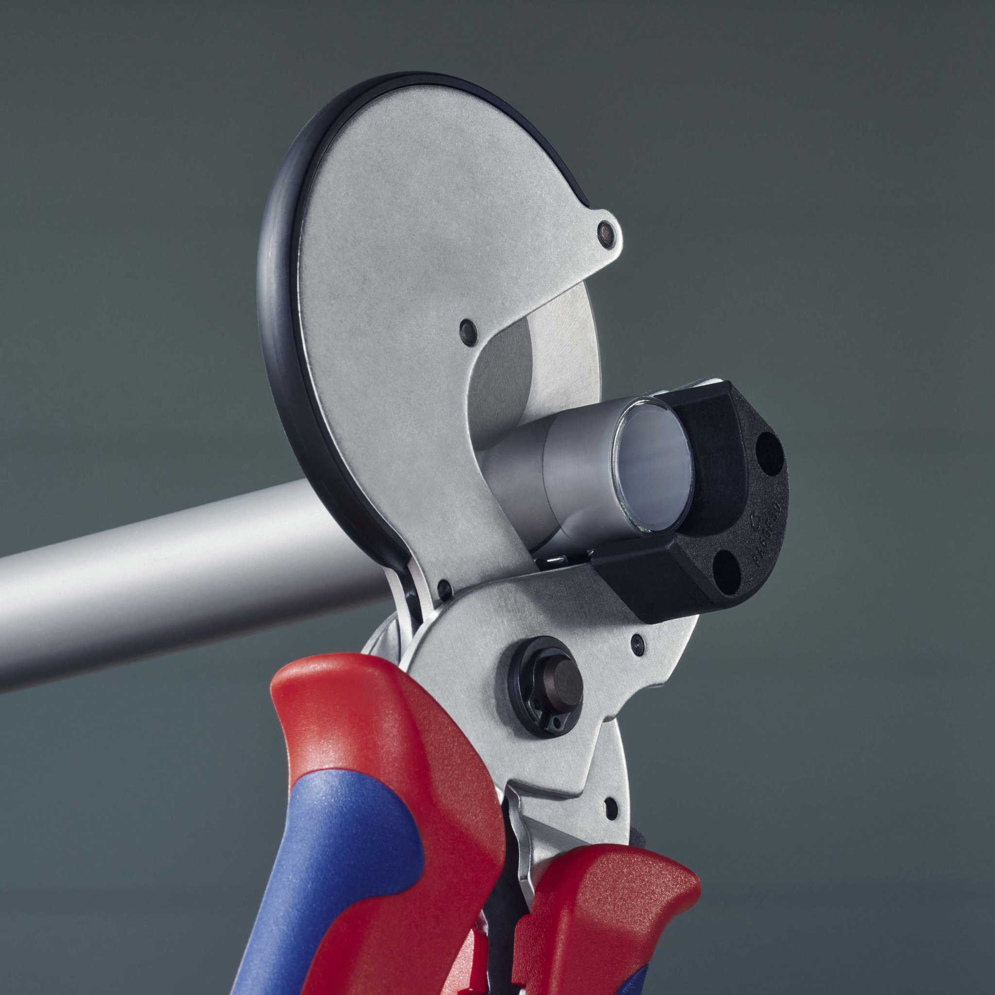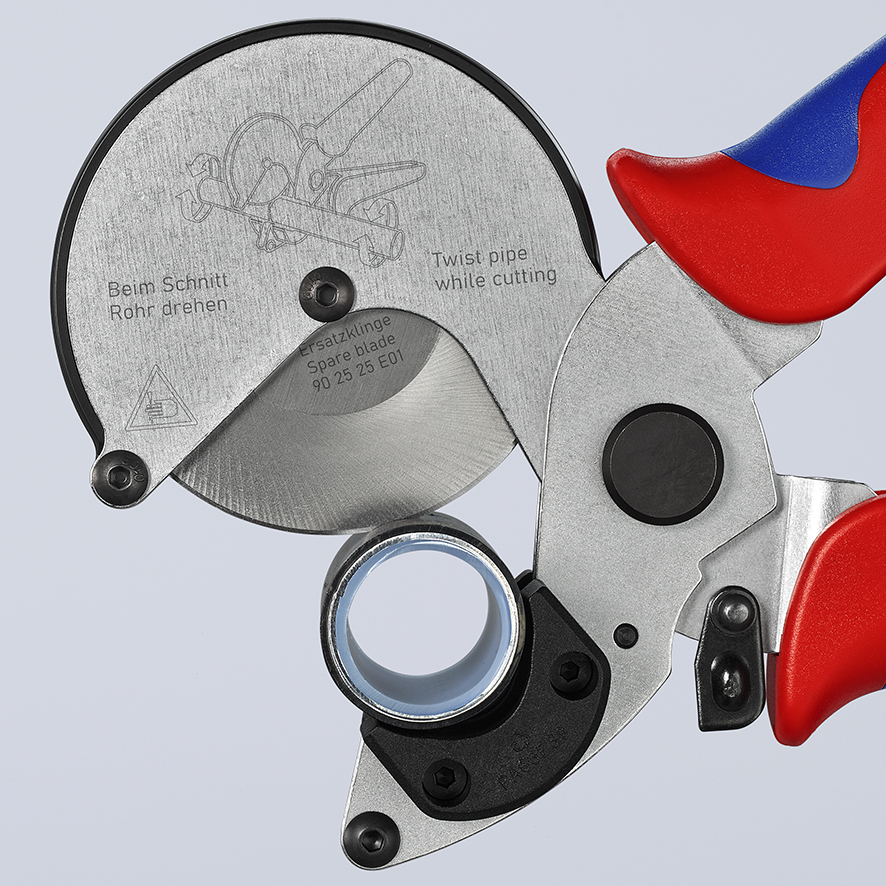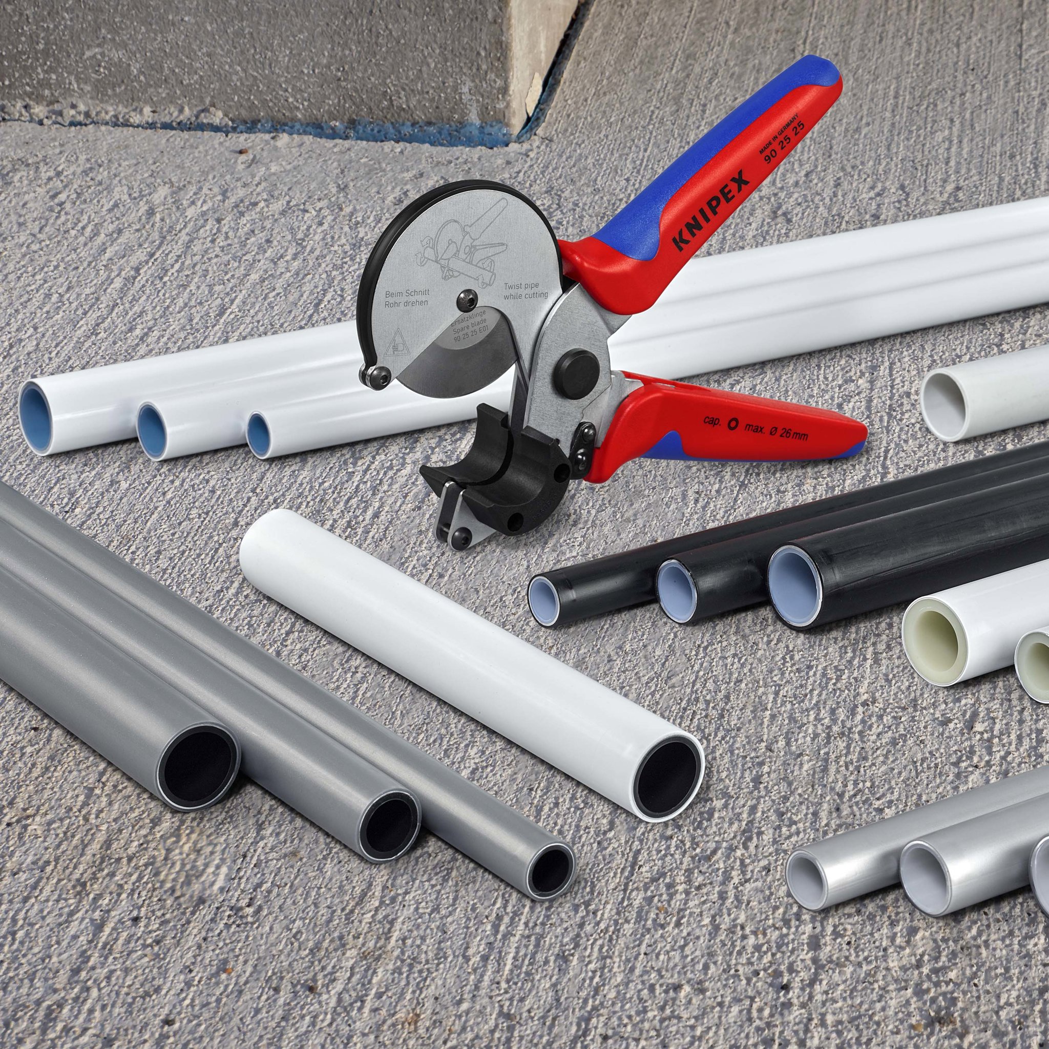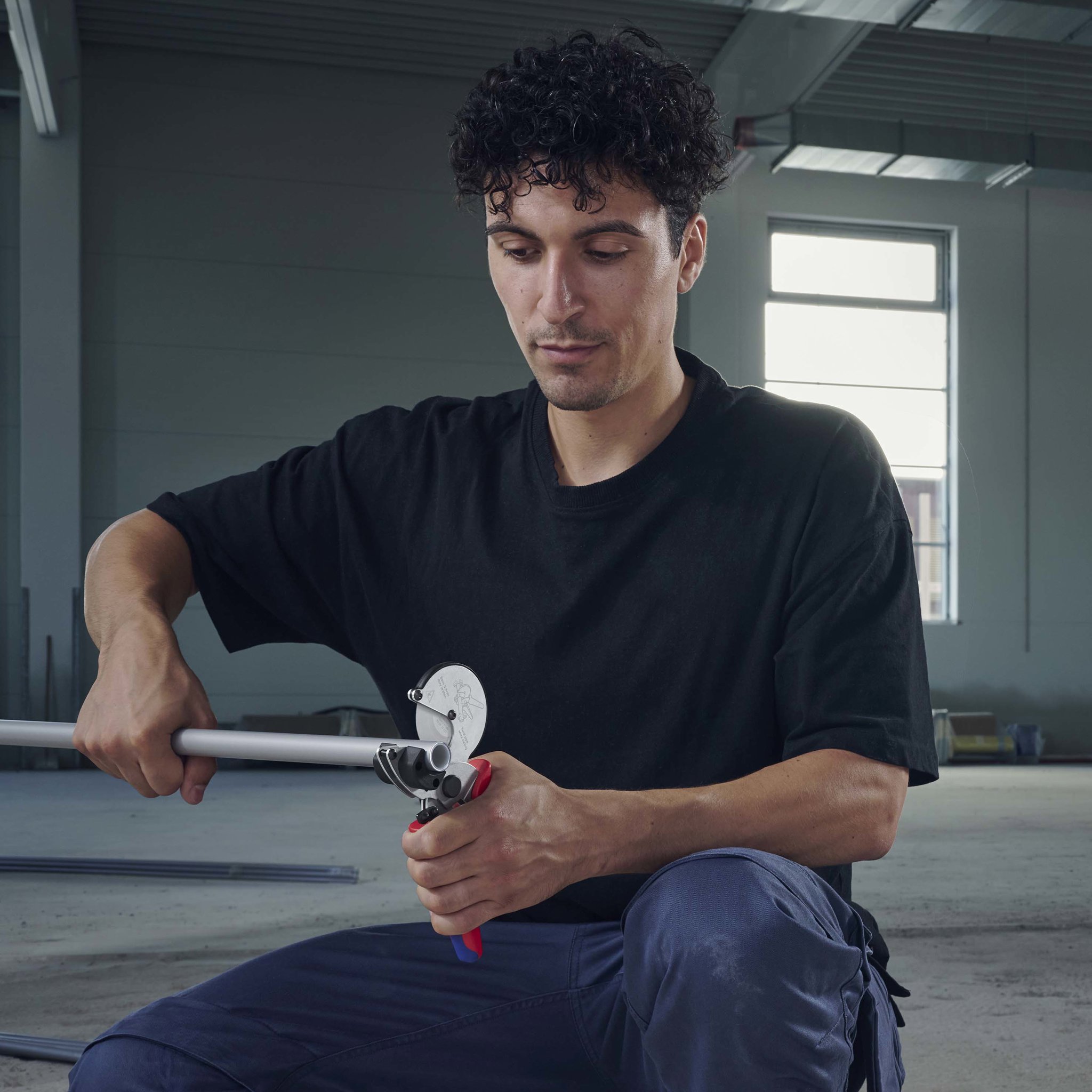 Ein hochwertiger Rohrschneider für Verbund- und Kunststoffrohre bis Ø 26 mm, der mit einem frei drehbaren Schneidrad den Kraftaufwand um bis zu 60 % reduziert. Er sorgt für mühelose, rechtwinklige Schnitte mit minimaler Rohrverformung, selbst bei Rohren mit dickerer Aluminiumschicht (z. B. Geberit Mepla). Der ergonomische Griff, ein Verschlussmechanismus für sicheren Transport und die Möglichkeit, sehr kurze Korrekturschnitte durchzuführen, machen ihn ideal für präzise und komfortable Arbeiten.