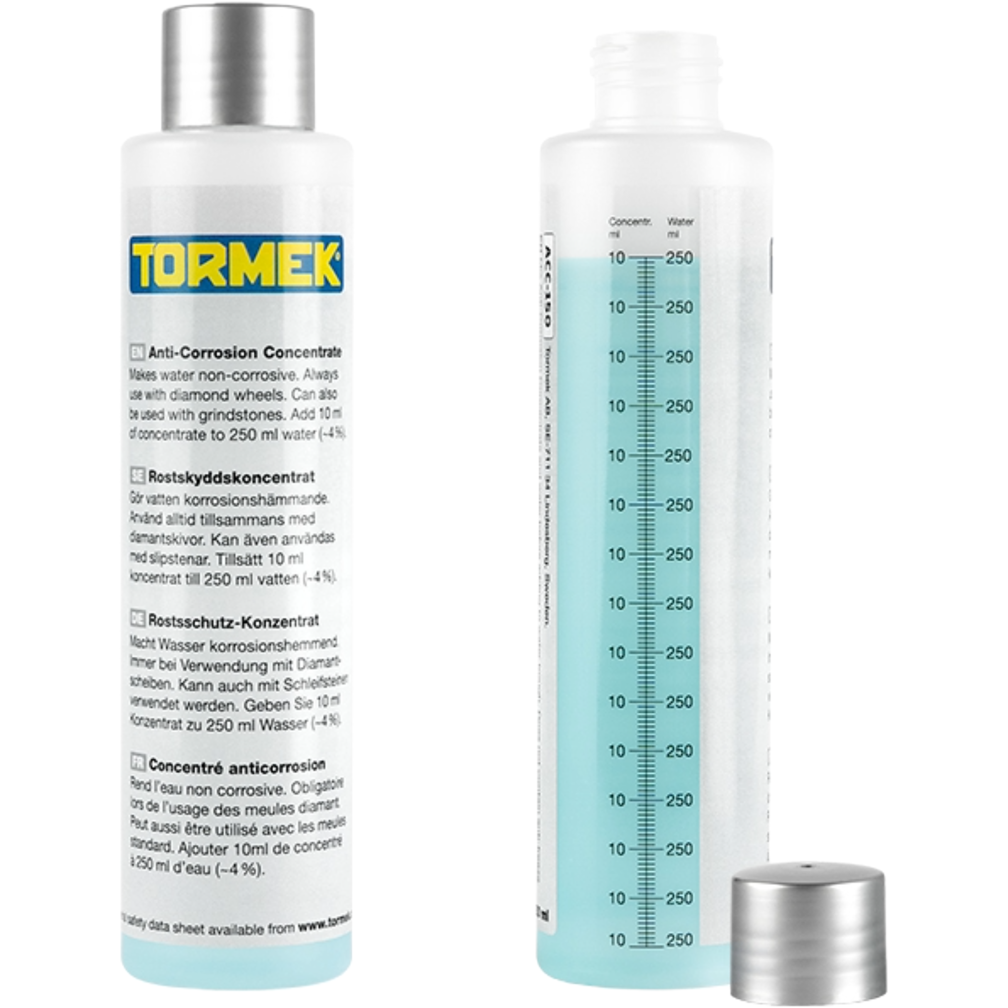 Das ACC-150 Rostschutz-Konzentrat verhindert Korrosion durch Wasser und schützt Diamant-Schleifscheiben zuverlässig vor Rost. Es wird speziell beim Nassschleifen mit Diamantscheiben eingesetzt, kann aber auch mit herkömmlichen Schleifscheiben verwendet werden, um Rostbildung zu vermeiden.