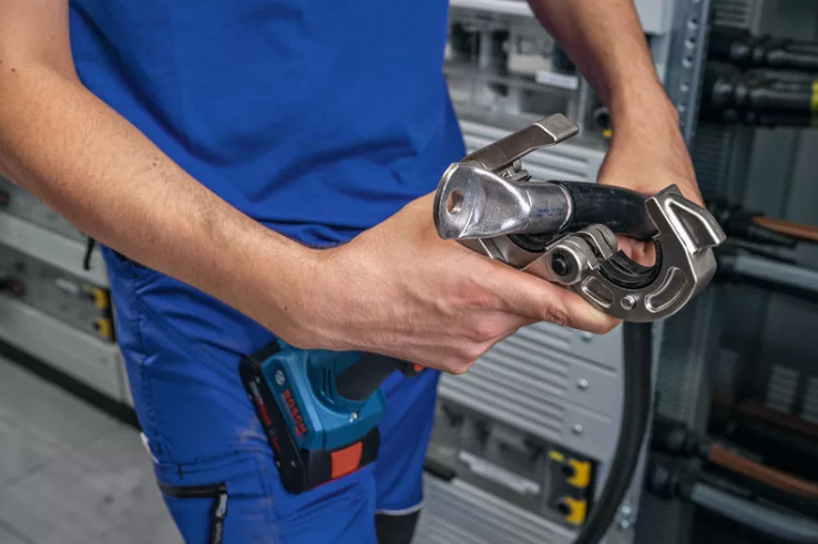 Die GPH 18V-60 eignet sich zum Verpressen von Kabelschuhen auf Kupfer- und Aluminiumkabel bis 300 mm². Die USB-Verbindung und die Auslesesoftware bieten einen Überblick über die Press-Historie, Fehlermeldungen und den Wartungsbedarf des Werkzeugs.