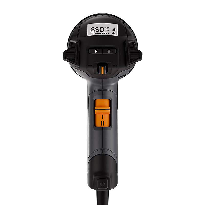 Das PRO HM 2320 E Heissluftgebläse setzt neue Massstäbe für präzises und effizientes Arbeiten im Handwerk und in der Industrie. Mit einer leistungsstarken 2300-Watt-Heizung und einer stufenlos einstellbaren Temperaturregelung von 80 °C bis 650 °C bietet es optimale Kontrolle bei anspruchsvollen Anwendungen. Der integrierte LCD-Bildschirm sowie die präzise 10 °C-Temperaturanpassung über den Joystick sorgen für eine besonders intuitive Bedienung und exakte Ergebnisse.