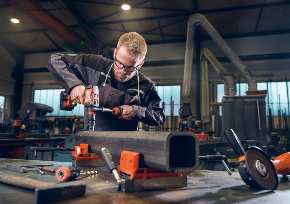 • 4-Gang Vollmetall-Getriebe. Mit Drehzahlen bis zu 4.000 U/min für optimale Schnittgeschwindigkeiten in Metall für jede Bohrung von 1,5 bis 80 mm.