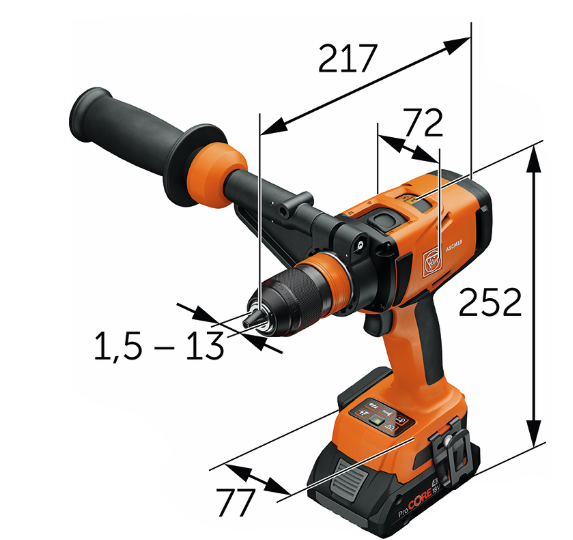 • Bohrfutter-Spannweite 1,5 - 13 mm