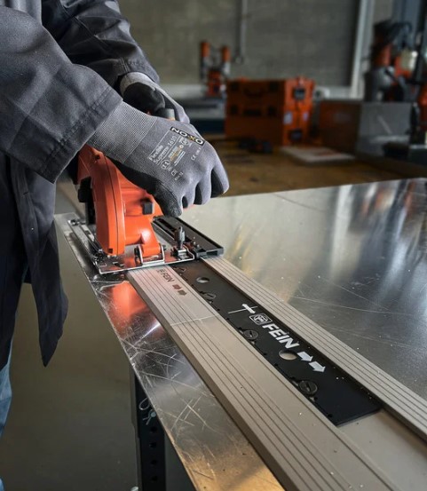 • Schnelles und präzises Sägen von Rohren, Profilen, Metallgittern und Blechen bis 57 mm Schnitttiefe möglich. Gerade, lange Schnitte dank Führungsschienenadapter - kompatibel zu Führungsschienen von Makita, BOSCH, Festool, Mafell.