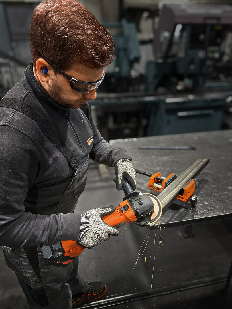 Staubresistenter und leistungsstarker Akku-Winkelschleifer für effektive Trenn-, Schleif- und Entgratarbeiten im Montageeinsatz.