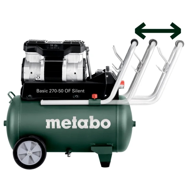Mit VarioGrip lässt sich der Zugbügel verschieben, sodass der Kompressor bequem gezogen werden kann und gleichzeitig platzsparendes Arbeiten möglich ist. Dank Aufnahmen für Druckluftschlauch, zwei Druckluftwerkzeuge, Steckplätzen für Kleinzubehör sowie einer praktischen Kabelaufwicklung ist alles ordentlich verstaut und sofort griffbereit.