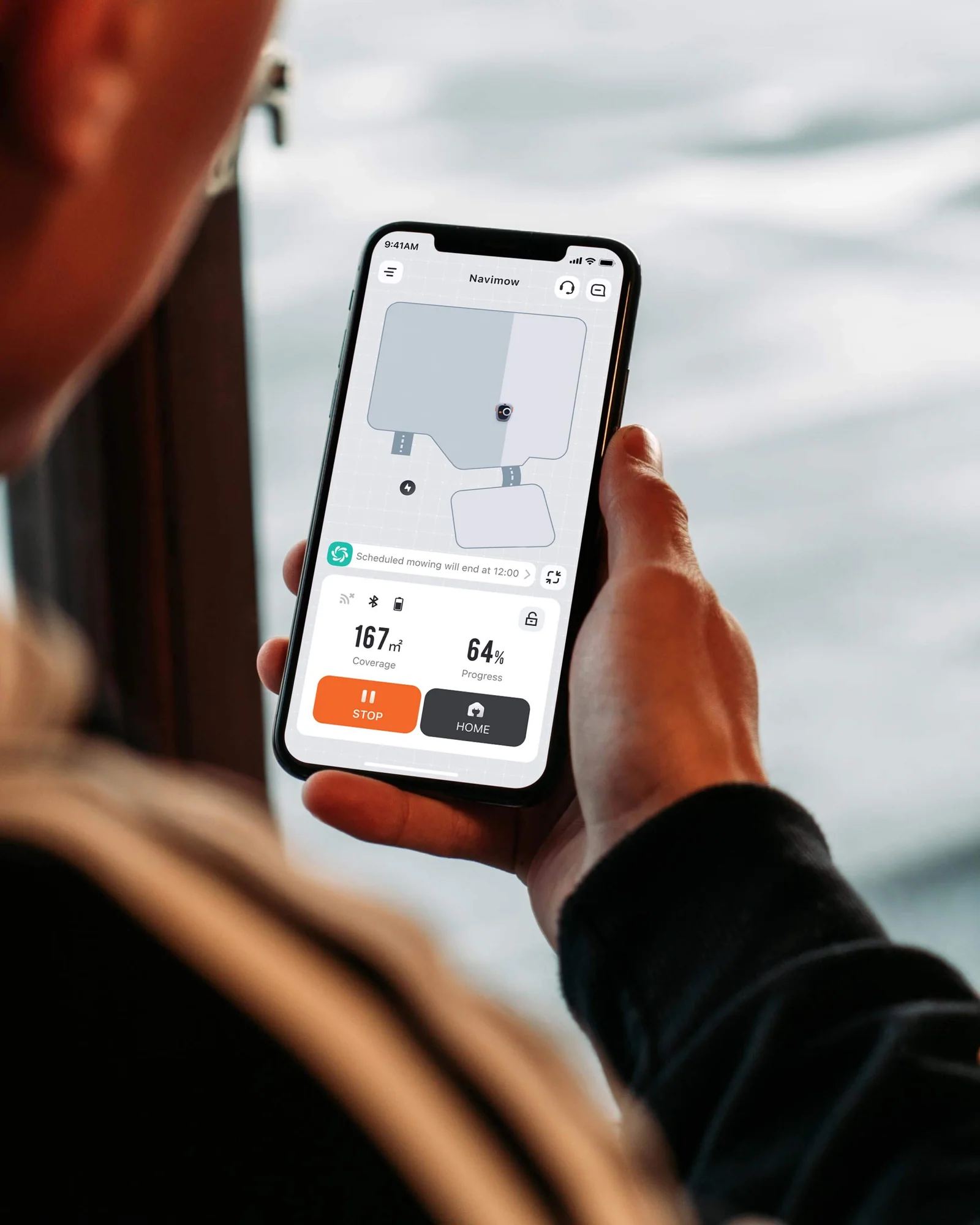 Dank WLAN- und Bluetooth-Verbindung können Sie den aktuellen Mähstatus in Echtzeit verfolgen und erhalten laufend Updates direkt auf Ihr Endgerät.