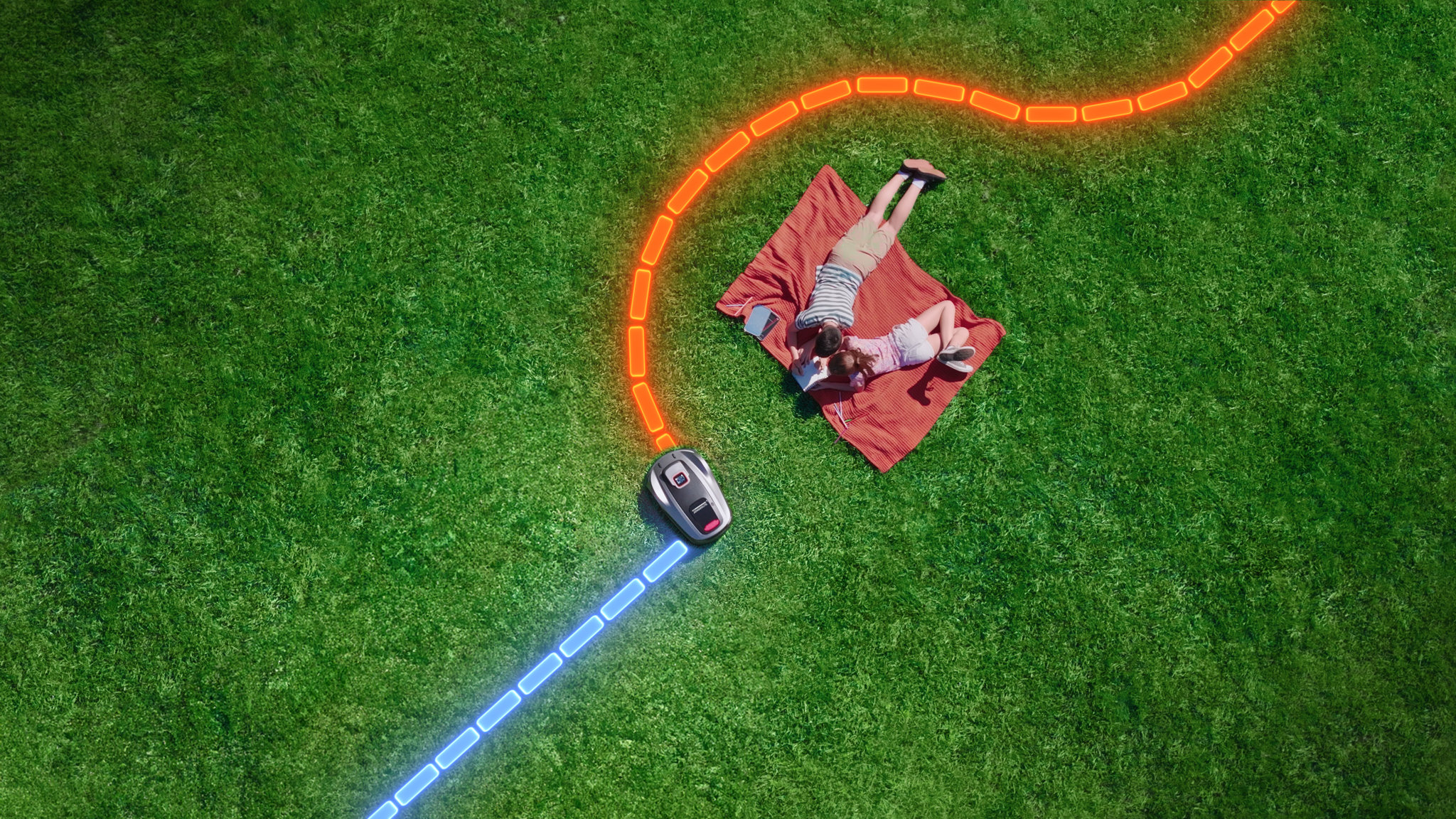 Navigiert intelligent um Bäume, Zäune und Gartenstrukturen herum und gewährleistet einen reibungslosen, kollisionsfreien Mähweg.