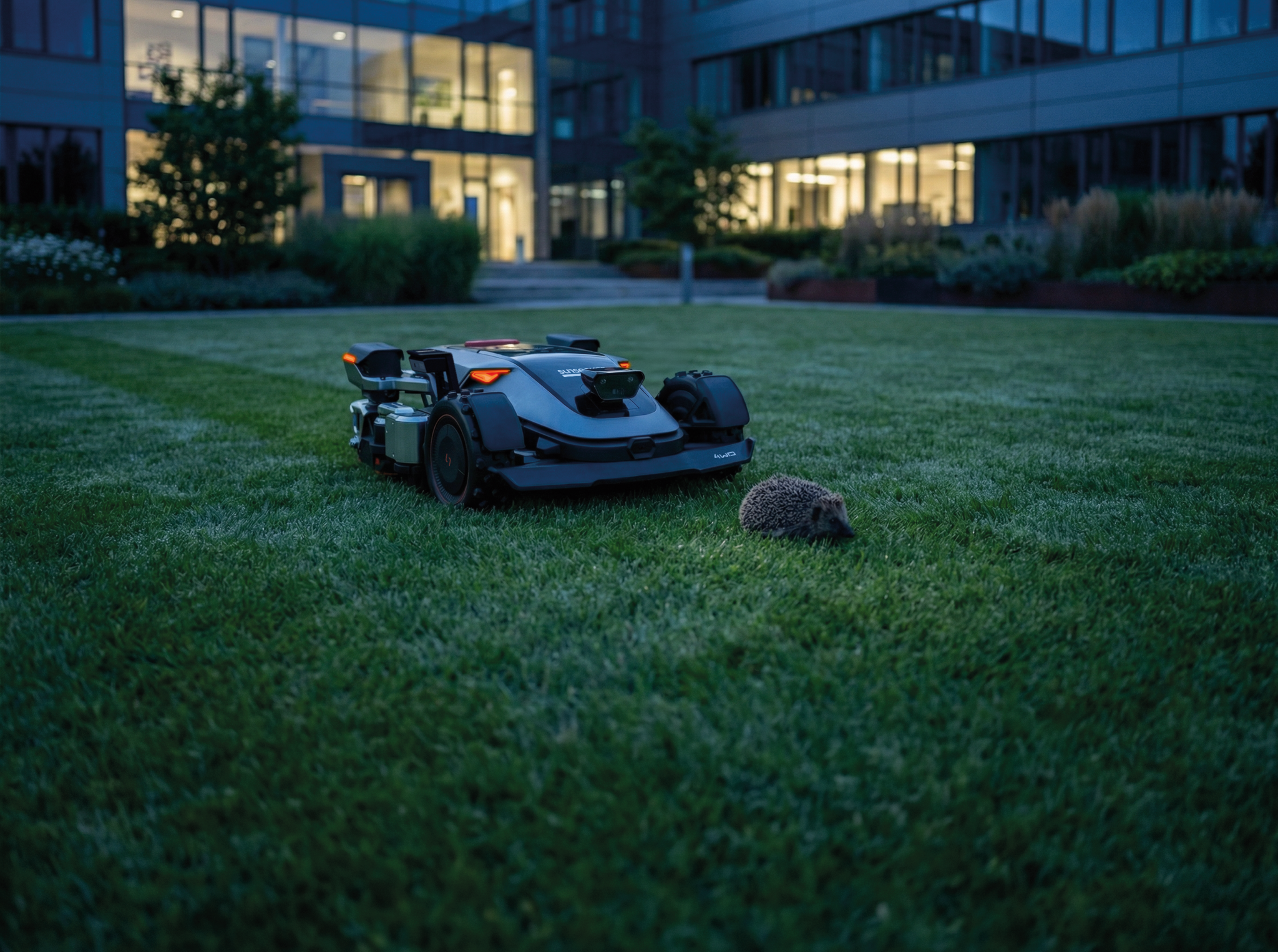 Das Sensorsystem des Sunseeker X9 ermöglicht einen unbeaufsichtigten 24/7-Einsatz in der professionellen Grünflächenpflege. Binokularkamera sowie Infrarot-, iToF- und dToF-Sensoren erfassen die Umgebung kontinuierlich und sorgen für eine lückenlose Rundumerkennung – bei Tageslicht ebenso wie bei Dunkelheit. Stoss- und Hebesensoren bieten zusätzliche Sicherheit im laufenden Betrieb.